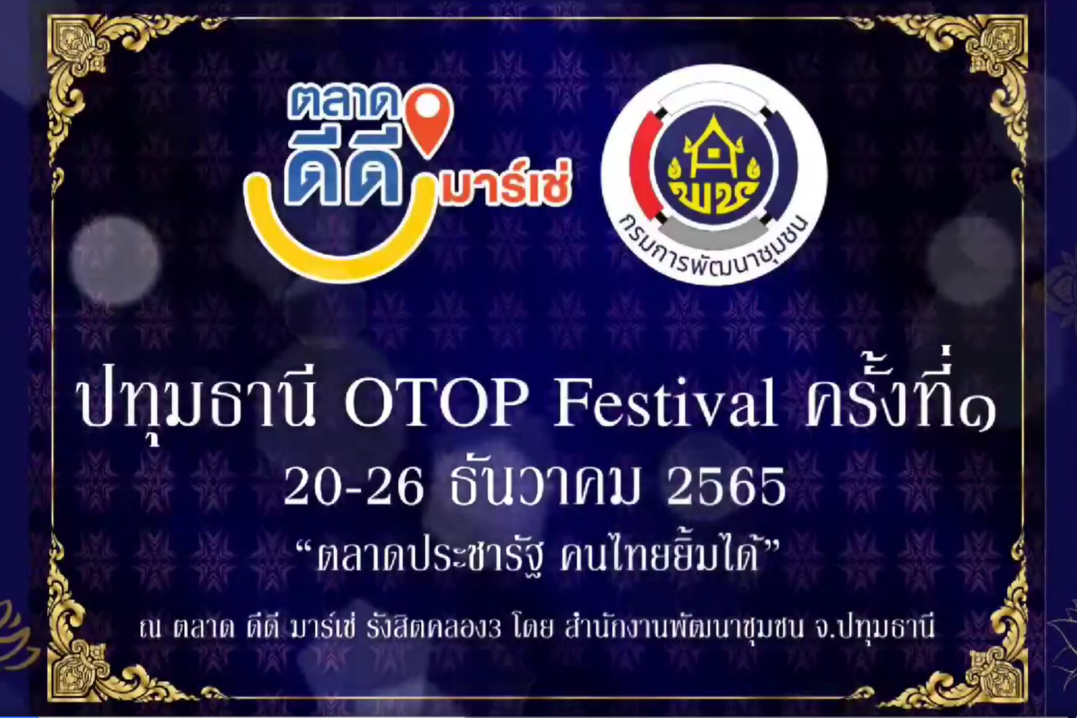 พช.ปทุมธานี ร่วมกับ ตลาด ดีดี มาร์เช่ รังสิตคลอง ๓ จัดงานเทศกาล “ตลาดประชารัฐ คนไทยยิ้มได้” ปทุมธานี OTOP Festival ครั้งที่ ๑ 19 ธันวาคม 65 / 10.08 น. ปทุมธานี OTOP Festival ครั้งที่ ๑ (Visited 1 times, 1 visits today)Facebook iconFacebookTwitter iconTwitterLINE iconLine