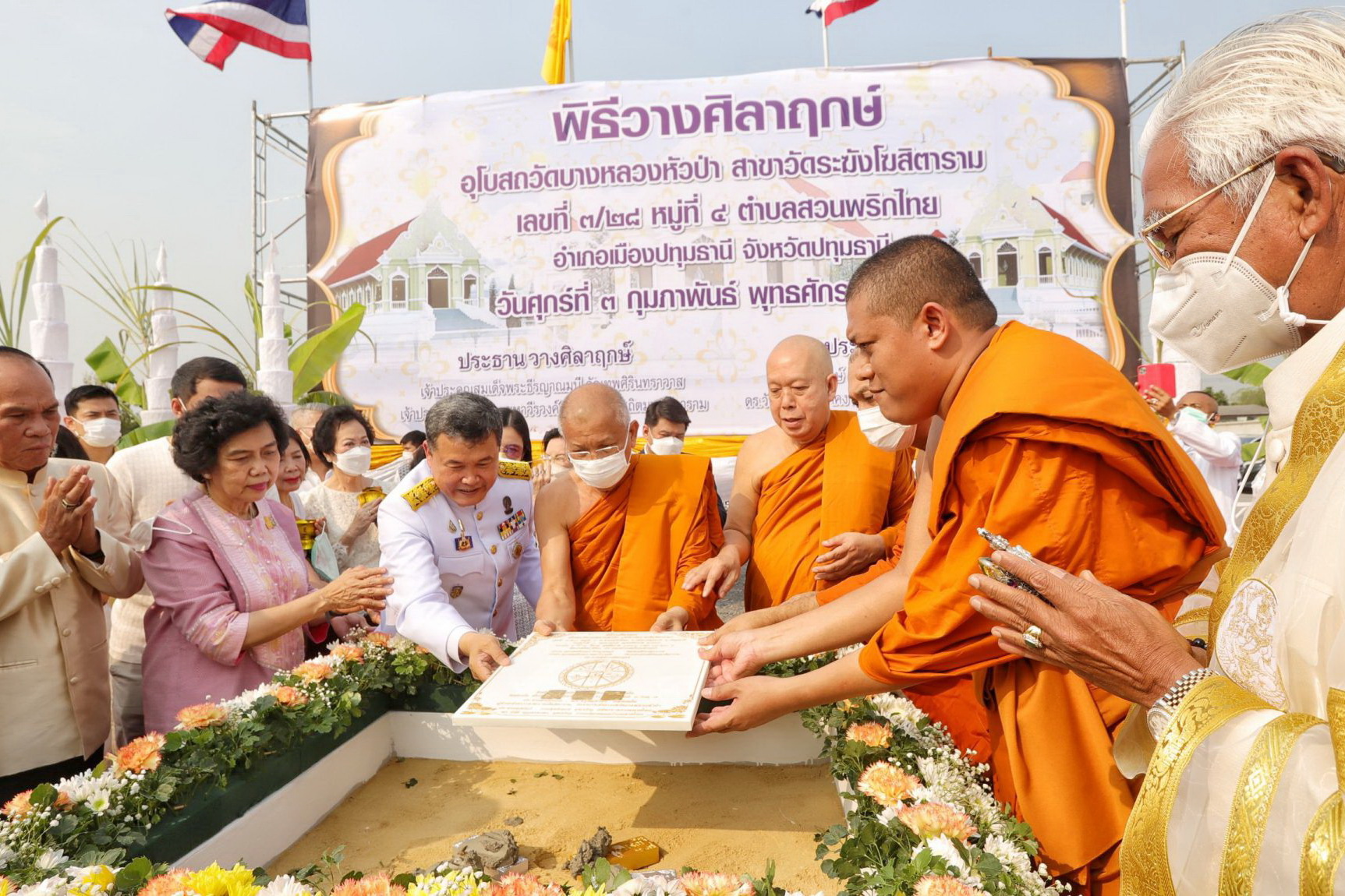 พช.ปทุมธานี “ร่วมพิธีวางศิลาฤกษ์อุโบสถวัดบางหลวงหัวป่า สาขาวัดระฆังโฆสิตาราม”