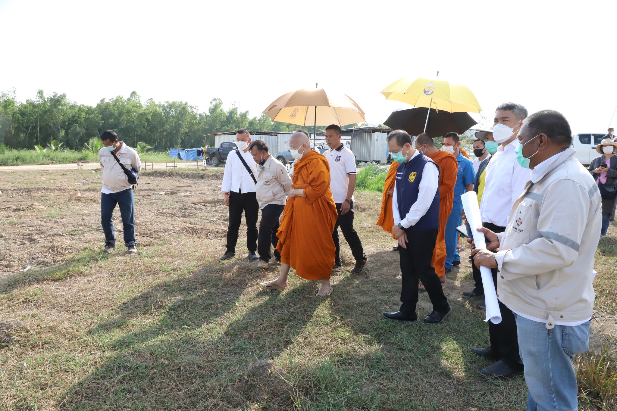 โอกาสนี้ เจ้าประคุณสมเด็จพระมหาวีรวงศ์ เลขานุการสมเด็จอริยวงศาคตญาณ สมเด็จพระสังฆราช พร้อมด้วยนายสุทธิพงษ์ จุลเจริญ ปลัดกระทรวงมหาดไทย และคณะ ได้ร่วมเอามื้อสามัคคี ขุดหลุม ปลูกต้นจามจุรี (ต้นก้ามปู) ซึ่งได้รับการสนับสนุนจากกรมป่าไม้ จำนวน ๔๐ ต้น และต้นมะฮอกกานี ซึ่งเป็นไม้ยืนต้นที่มีความเหมาะสมกับพื้นที่และเติบโตเร็ว อันเป็นการน้อมนำหลักการตามพระราชปณิธานของพระบาทสมเด็จพระเจ้าอยู่หัวที่ทรงมุ่งสืบสาน รักษา และต่อยอด แนวพระราชดำริของพระบาทสมเด็จพระบรมชนกาธิเบศร มหาภูมิพลอดุลยเดชมหาราช บรมนาถบพิตร “ปลูกป่า ๓ อย่าง ประโยชน์ ๔ อย่าง” มาประยุกต์ใช้ให้เหมาะสมกับพื้นที่ เป็นต้นแบบการพึ่งพาตนเอง ตามหลักปรัชญาของเศรษฐกิจพอเพียงและทฤษฎีใหม่ประยุกต์สู่โคก หนอง นา นำไปสู่การพัฒนาพื้นที่ได้อย่างยั่งยืน พร้อมทั้งเดินเยี่ยมชมบริเวณพื้นที่ก่อสร้างพระวิหาร กุฏิ อาคารเสนาสนะ แปลงโคก หนอง นา และพื้นที่โดยรอบบริเวณ พร้อมทั้งร่วมรับฟังบรรยายสรุปความคืบหน้าของการดำเนินโครงการฯ ประกอบด้วย ๑) เรื่องการดูแลรักษาต้นไม้ในพื้นที่ โคก หนอง นา สัปปายะและรมณียสถาน ขนาดพื้นที่ ๔๐ ไร่ ๒) การสำรวจ ออกแบบและประมาณการราคาค่าก่อสร้างถนนและท่อระบายน้ำ ๓) การหารือขอรับการสนับสนุนจากองค์การบริหารส่วนจังหวัดปทุมธานี ๔) การดำเนินงานติดตั้งระบบไฟฟ้า ๕) การยื่นขอรังวัดที่ดิน เพื่อตรวจสอบแนวเขตที่ดินสำหรับการย้ายเสาไฟฟ้า ๖) เครื่องสูบน้ำพลังงานแสงอาทิตย์