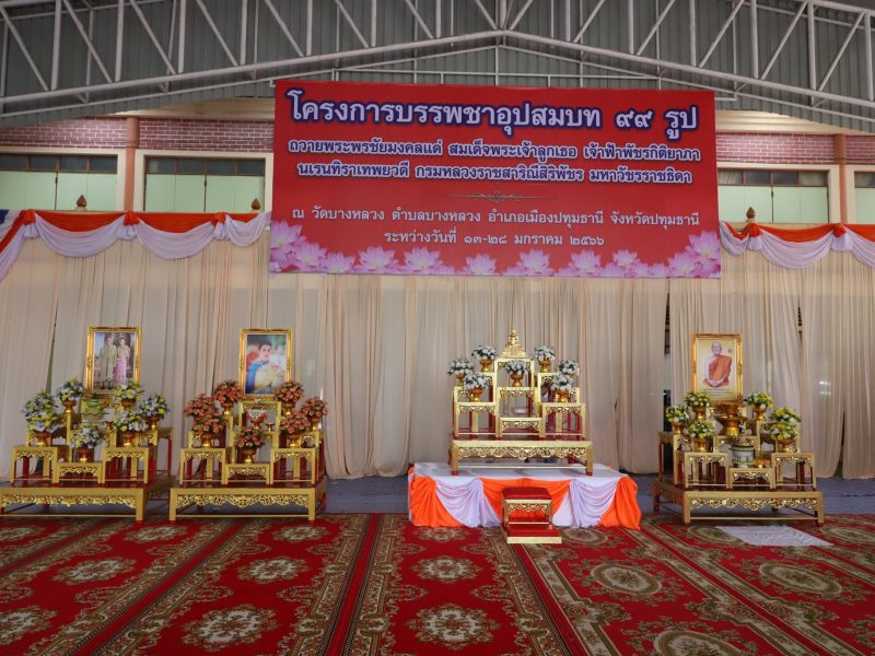 พช.ปทุมธานี “ร่วมพิธีบรรพชาอุปสมบท ๙๙ รูป เพื่อถวายพระพรชัยมงคลแด่สมเด็จพระเจ้าลูกเธอ เจ้าฟ้าพัชรกิติยาภา นเรนทิราเทพยวดี กรมหลวงราชสาริณีสิริพัชร มหาวัชรราชธิดา ให้ทรงหายจากพระอาการประชวร”