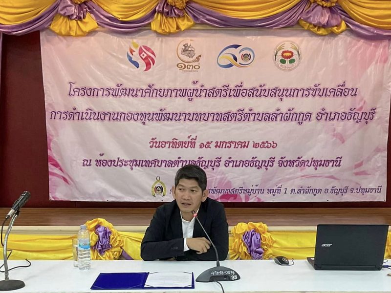 พช.ปทุมธานี “สพอ.ธัญบุรี เสริมพลังสตรีทางเศรษฐกิจ ผ่านโครงการพัฒนาศักยภาพผู้นำสตรีเพื่อสนับสนุนการขับเคลื่อนการดำเนินงานกองทุนพัฒนาบทบาทสตรีตำบลลำผักกูด”