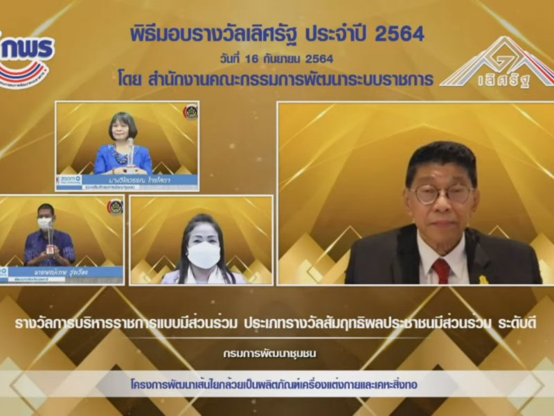 พช.ปทุมธานี “ร่วมพิธีมอบรางวัลเลิศรัฐ ประจำปี ๒๕๖๔ ผ่านระบบอิเล็กทรอนิกส์”
