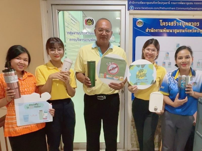 พช.ปทุมธานี “ประกาศเจตนารมณ์ SAY No Foam นุ่งผ้าไทย ลดการใช้พลาสติก”