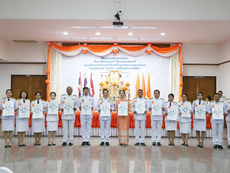 จังหวัดปทุมธานี “จัดพิธีมอบแบบลายผ้าพระราชทาน ผ้าลายสิริวชิราภรณ์ และเครื่องหมายรับรองสินค้าแฟชั่นและหัตถกรรมพระราชทาน : Sustainable Fashion : แฟชั่นแห่งความยั่งยืน ให้แก่ช่างทอผ้า ผู้ผลิต ผู้ประกอบการ นำไปถักทอผสมผสานกับลวดลายภูมิปัญญาพื้นถิ่นตามความคิดสร้างสรรค์ ต่อยอดภูมิปัญญา เพิ่มมูลค่าให้ผลิตภัณฑ์ผ้าไทยและงานหัตถกรรม”