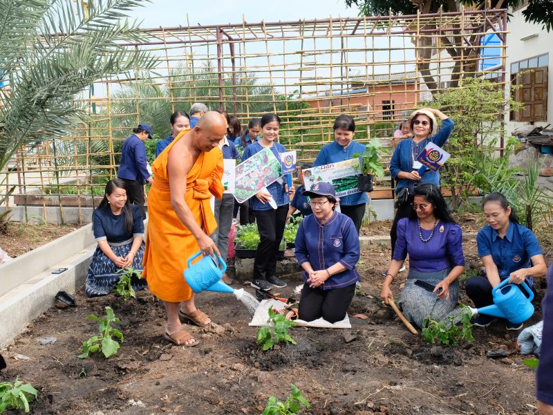 ประธานแม่บ้านมหาดไทยปทุมธานี สร้างความมั่นคงทางอาหารอย่างต่อเนื่อง ภายใต้แนวคิด “ผู้นำต้องทำก่อน” ใช้พลัง “บวร” พัฒนาโรงเรียนและศาสนสถานเป็นต้นแบบแหล่งเรียนรู้ในการปลูกผักสวนครัว