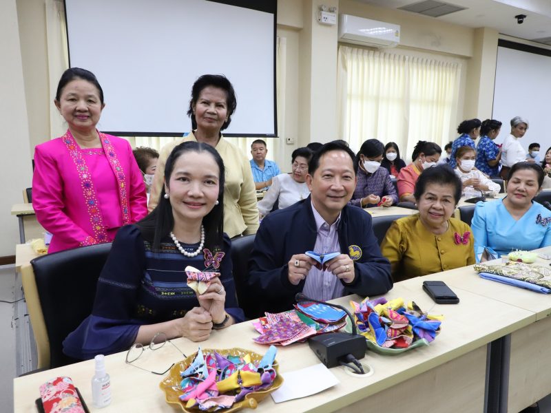 พช.ปทุมธานี “ผู้ว่าฯ ปทุมธานี จับมือแม่บ้านมหาดไทยฯ ร่วมประดิษฐ์ผีเสื้อจากผ้าไทย สนับสนุนงานวันกาชาด ๑๐๐ ปี”