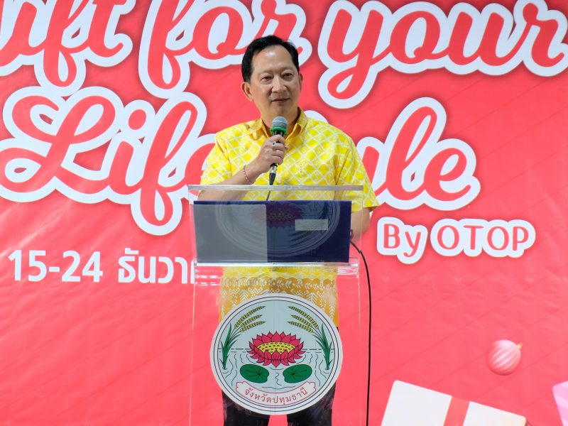 ผู้ว่าฯ ปทุมธานี “ขับเคลื่อนนโยบายสำคัญกระทรวงมหาดไทย ส่งเสริมเศรษฐกิจฐานราก ด้านการผลิต การตลาด และเพิ่มช่องทางการจำหน่าย ให้ผลิตภัณฑ์ชุมชน เปิดงาน “Gift for your lifestyle by OTOP เทศกาลของขวัญของฝากส่งท้ายปีเก่าต้อนรับปีใหม่ ๒๕๖๗”